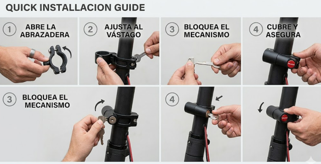 Moverse en patinete eléctrico es rápido, ecológico y divertido, pero la inseguridad urbana puede arruinar la experiencia. Muchos candados son pesados, fáciles de cortar o difíciles de instalar.